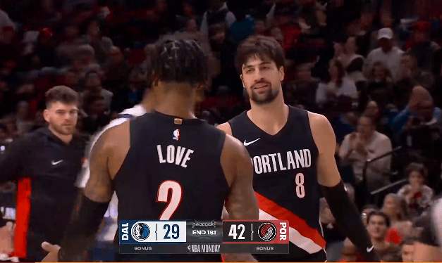 第一節比賽中,哨分樂(lè )?;№攭荷谌滞哆M(jìn),投進(jìn)開(kāi)拓者首節42-29領(lǐng)先獨行俠13分。開(kāi)拓