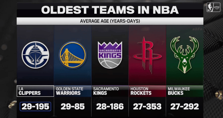 [流言板]聯(lián)盟平均年齡最老球隊:快船、勇士、國王、火箭、雄鹿