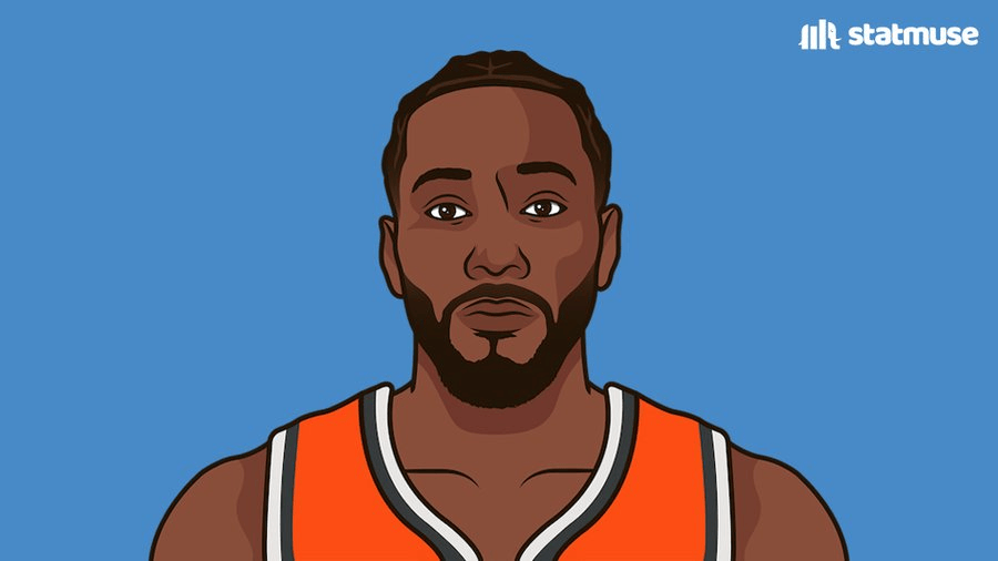 據統計,科懷-倫納德過(guò)去五場(chǎng)比賽場(chǎng)均砍下40分。
